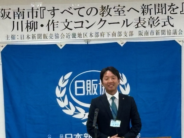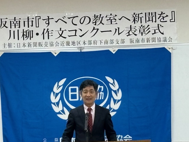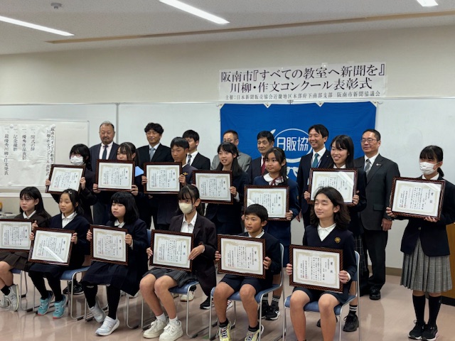 大阪府南部支部阪南市新聞販売協議会が主催する「第9回『すべての教室に新聞を』川柳・作文コンクール」の表彰式が11月12日、阪南市防災コミュニティセンターで開かれました。